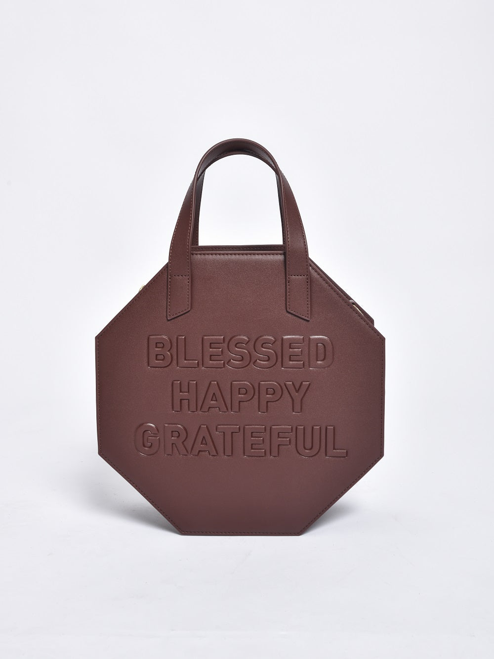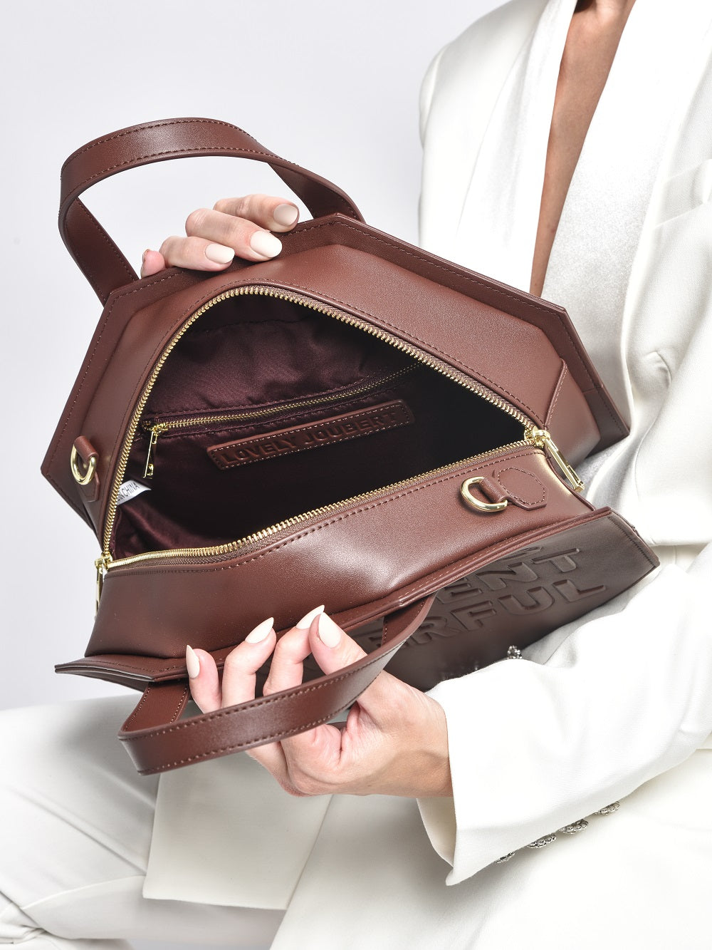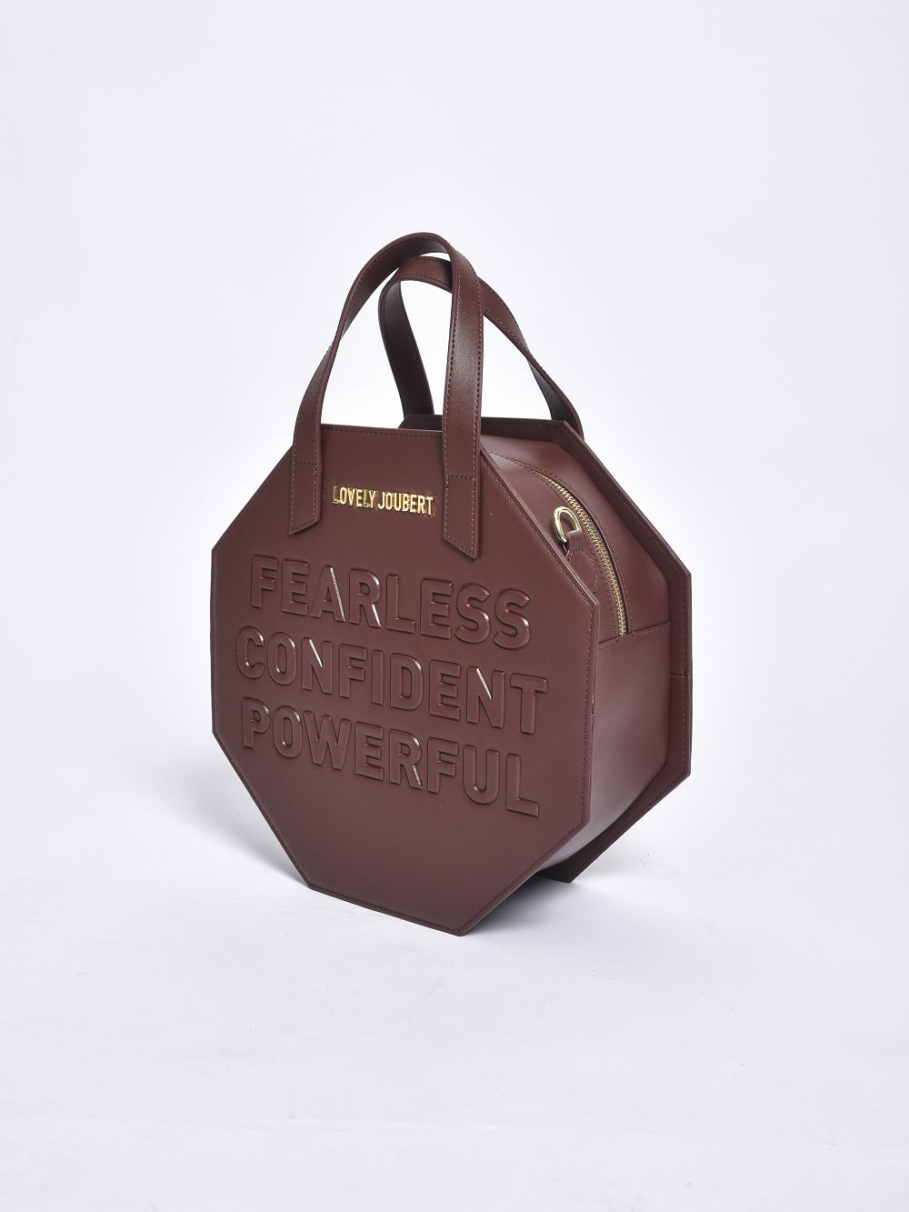 Introducing our brown vegan matte leather luxury affirmation handbag!
